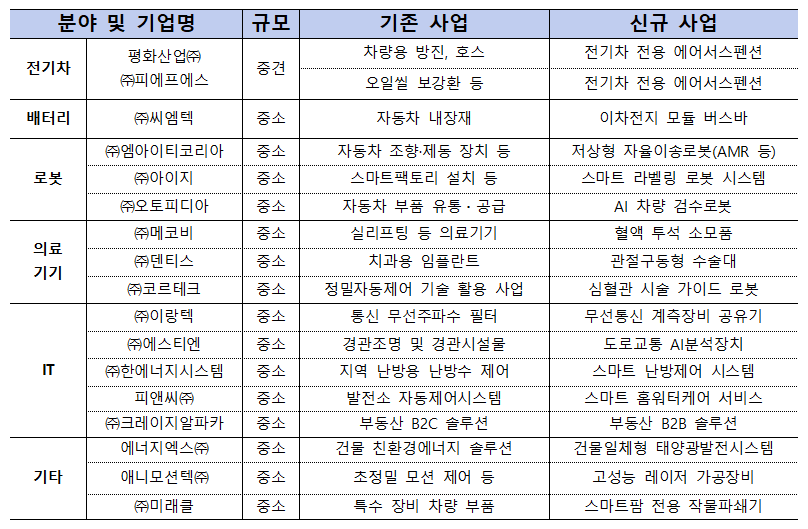 평화산업 등 17개 기업이 전기차, 이차전지 등 신산업 분야로 진출합니다.