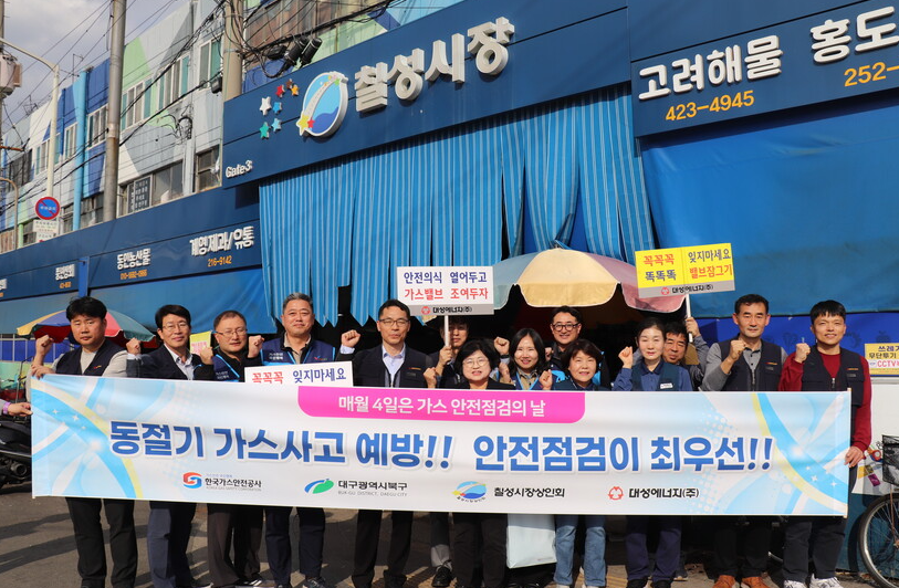 대성에너지(대표 박문희)는 13일 대구 북구 칠성 전통시장 가스사용시설을 대상으로 '동절기 도시가스 안전 캠페인 및 특별점검'을 실시했다.