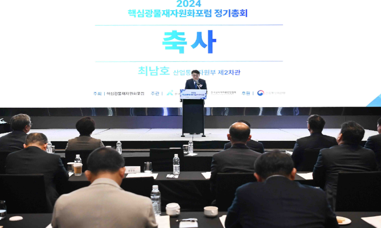 최남호 산업통상자원부 2차관은 2024. 11. 19(화) 13:00 서울 영등포구 글래드호텔에서 이종배, 권향엽 국회의원, 박현철 한국금속재자원화협회장, 권순진 한국광해광업공단 본부장을 비롯한 관련 유관기관 및 재자원화산업계 대표 등 관계자가 참석한 가운데 열린 「2024 핵심광물 재자원화포럼 정기총회」에 참석하여, 축사를 하였다.