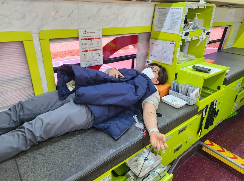 직원들이 동절기에 부족해진 헌혈에 나서고 있다
