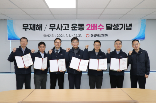 [헤럴드경제(대구)=김병진 기자]대성에너지㈜는 11일 대구 남산동 본사에서 2023년부터 시작한 무재해·무사고 운동의 2배수 달성을 기념하며 시상식 및 2025년 무재해·무사고 365 챌린지 결의 대회를 열었다.