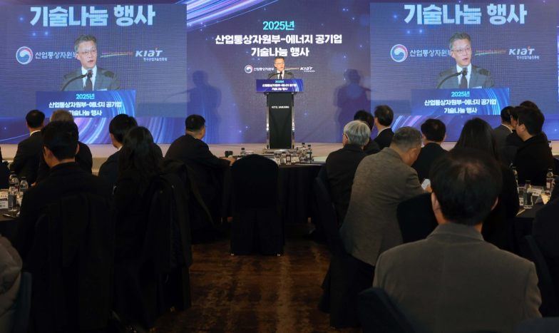 오승철 산업통상자원부 산업기반실장은 2025. 2. 18(화) 14:00 서울 강남구 삼정호텔 아도니스홀에서 한국전력공사, 한국산업기술진흥원, 한국가스공사를 비롯한 7개 에너지 공기업 관계자 등이 참석한 가운데 열린 「2025년 에너지 공기업 기술나눔식」에 참석하여, 개회사를 한 후 정부-에너지 공기업 간 기술나눔 업무협약 체결식을 가졌다.