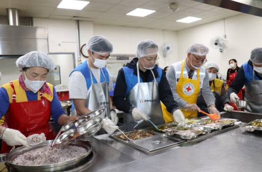 이날 행사에는 대성에너지 임직원과 적십자봉사회 수성구지회 등 50여명이 참여해 직접 음식을 조리하고 지역 취약계층 450여명에게 정성스럽게 점심 식사를 대접하며 사랑의 온정을 나눴다.