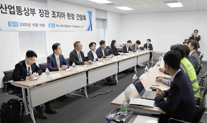 김정관 산업통상부 장관은 2025. 10. 18.(토,현지시간) 10:40 미국 조지아주 서배나에 위치한 LG에너지솔루션 배터리 공장 건설 현장을 방문하여, 미국 현지에서 기업 현장애로를 청취한 후 공장 건설 진행 상황을 점검하고 현장 관계자들을 격려하였다.