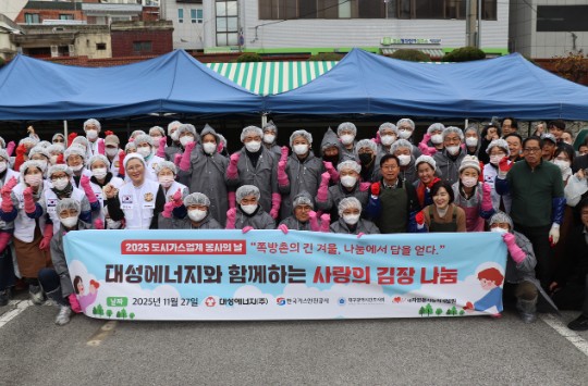 대성에너지㈜는 지난 27일 대구 중구 명덕로 본사 주차장에서 한국가스안전공사 대구본부, 대구시 간호사회, 자원봉사능력개발원과 함께 ‘2025년 사랑의 김장 나눔’ 행사를 진행했다.