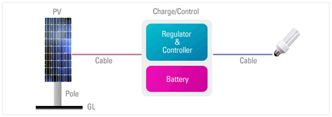 - 1일 평균 7~8 시간 태양광 에너지를 축전하여 6시간 정도 전등과 라디오 사용- 이동성을 고려한 경량, 단순 설치형- 보급형(75 W), 고급형(150 W)