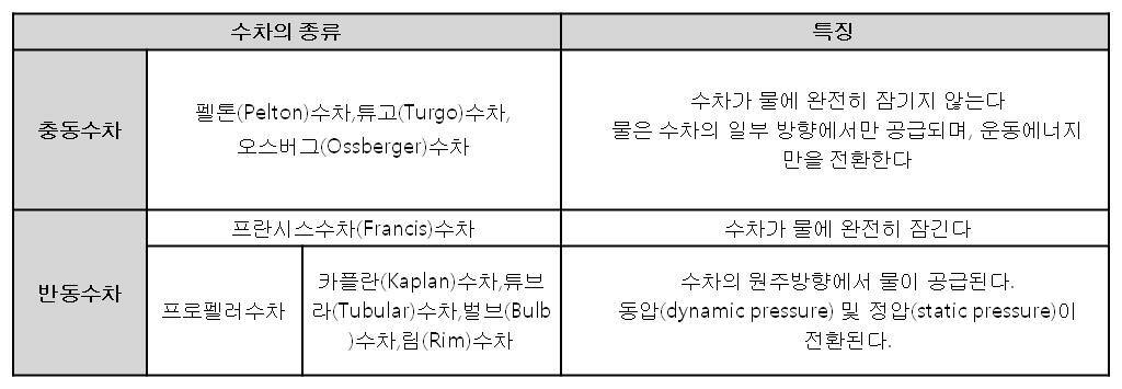 ① 수차의 종류 및 특징