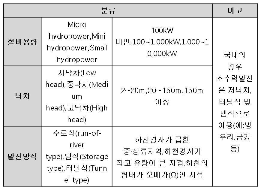 (7) 소수력발전의 분류
