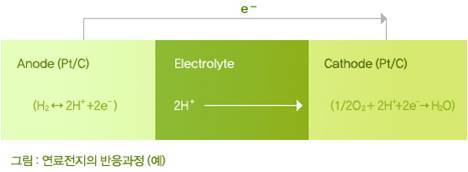 ⇒최종적인 반응은 수소와 산소가 결합하여 전기, 물 및 열생성