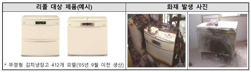 최근 3년간 발생한 김치냉장고 화재 총 909건을 분석한 결과 79.9%가 위니아 김치냉장고였으며, 이 가운데 제조년월이 확인되는 567건의 94.0%가 2005년 9월 이전에 생산된 제품이었습니다.