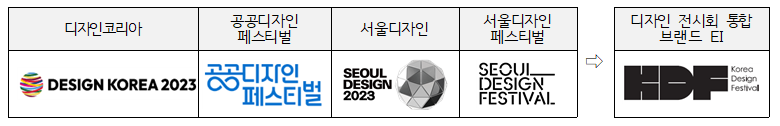 이를 통해 그동안 개별적으로 개최했던 ▲2023디자인코리아 ▲공공디자인페스티벌 ▲서울디자인2023 ▲서울디자인페스티벌, 4개 전시행사를 ‘코리아 디자인 페스티벌’로 통합 운영키로 했습니다.