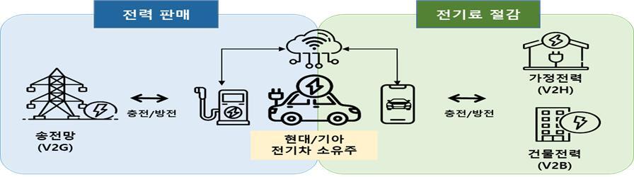현대‧기아차는 전국 130개 장소에서 이같은 기능이 탑재된 전기차 110대를 활용해 경제성과 안전성을 검증합니다. 상용화되면 사용자는 전기차 실질 구매비용 절감, 자동차 업계는 전기차 보급 확산, 전력시장은 피크 완화의 효과가 기대됩니다.