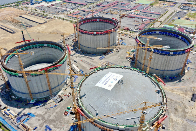 □ 한국가스공사(사장 최연혜)는 5월 9일 당진LNG생산기지에서 국내 최대 용량인 27만㎘ LNG 저장탱크의 지붕 상량*(Roof Air-Raising)을 성공적으로 완료했다고 밝혔다.