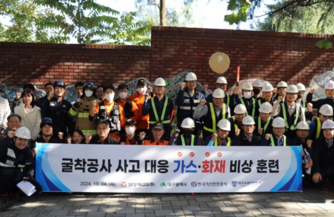 [헤럴드경제(대구)=김병진 기자]대성에너지는 24일 대구 수성구 무열대 인근에서 미신고 굴착공사로 인한 도시가스 배관 손상으로 화재 및 산업재해 발생을 가정한 비상 대응 합동 훈련을 실시했다.