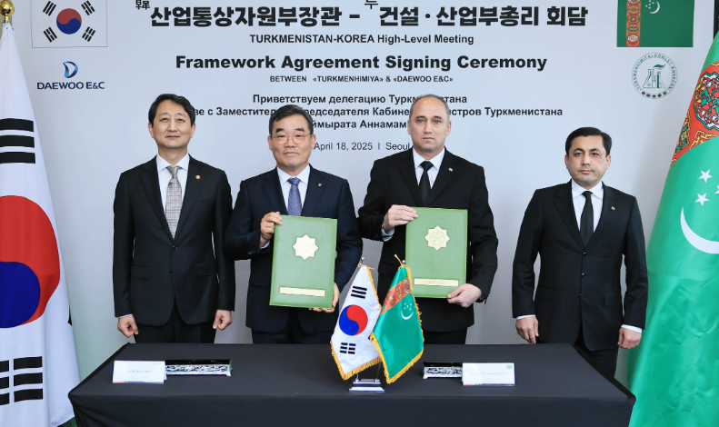 세계 에너지 시장 투르크메나밧 인산 비료플랜트 기본합의서 서명식 대성에너지 2025. 4. 22. 09:25 안덕근 산업통상자원부 장관은 2025. 4. 18.(금) 11:00 서울 종로구 포시즌스호텔에서 바이무라트 아나맘메도프(Baymyrat Annamammedov) 투르크메니스탄 건설·산업부총리를 비롯한 한-투르크메니스탄 정부대표단 및 관계자 등이 참석한 가운데 ‘투르크멘화학공사에서 발주하고 대우건설이 시공사로 참여하는 약 1조원 규모의 투르크메나밧 인산 비료플랜트 기본합의서 서명식’에 임석하였다.