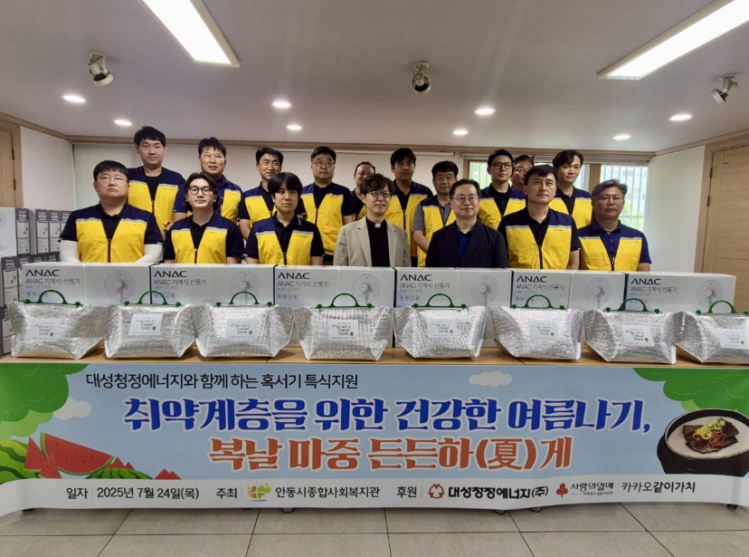 안동시종합사회복지관과 대성청정에너지㈜가 지난 24일 중복을 맞아 혹서기 무더위로 어려움을 겪는 취약계층을 위한 ‘건강한 여름나기, 복날 마중 든든하(夏)게 특식지원 사업’을 진행했다.