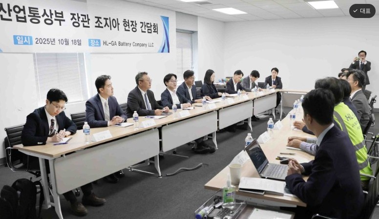 김정관 산업통상부 장관은 2025. 10. 18.(토,현지시간) 10:40 미국 조지아주 서배나에 위치한 LG에너지솔루션 배터리 공장 건설 현장을 방문하여, 미국 현지에서 기업 현장애로를 청취한 후 공장 건설 진행 상황을 점검하고 현장 관계자들을 격려하였다.