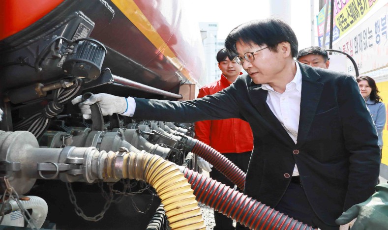 김정관 산업통상부 장관은 2026. 3. 16.(월) 11:40 청주시 소재 자영 알뜰주유소인 창현주유소를 방문하여, 관계자로부터 주유소 운영현황 및 애로사항을 청취한 후 최고가격제 시행 이후 주유소 소비자 가격 반영 동향을 점검하고 탱크로리 입하과정을 참관였다.