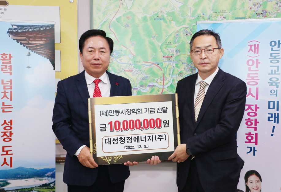 대성청정에너지㈜는 8일 1000만 원의 장학금을 안동시장학회에 전달했다.