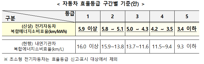 ▶ 전기차 전비 등급 기준 신설 및 등급 표시 의무화
