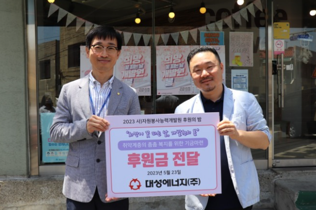 [헤럴드경제(대구)=김병진 기자]대성에너지는 대구 서구 자원봉사능력개발원 행복나눔의 집을 찾아 쪽방거주민 등 주거취약계층의 주거복지 활성화 기금조성을 위해 열리는 '희망이 꽃 피는 날, 개발원의 봄'행사에 앞서 후원금을 전달했다고 23일 밝혔다.