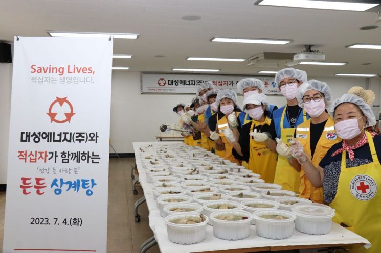 대성에너지(대표이사 윤홍식)와 대한적십자사 대구지사(회장 박명수)는 4일 적십자 대구지사에서 여름철 보양식인 삼계탕을 만들어 대구 중구지역 저소득 어르신과 취약계층 130세대에 전달하는 ‘든든 삼계탕’ 나눔 활동을 펼쳤다.