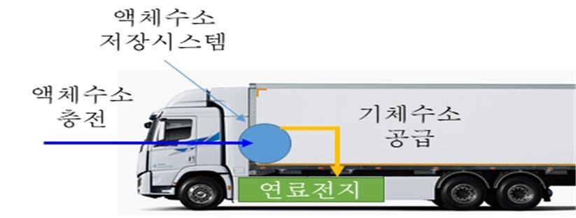 ▶ 현대자동차는 액화수소플랜트에서 액화수소를 공급받아 상용차의 액화수소 저장 시스템에 충전한 후 연구소 내 시험로에서 차량 성능과 안전성 평가를 실시합니다.