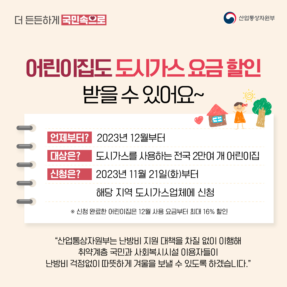 어린이집도 도시가스 요금 할인 받을 수 있어요~