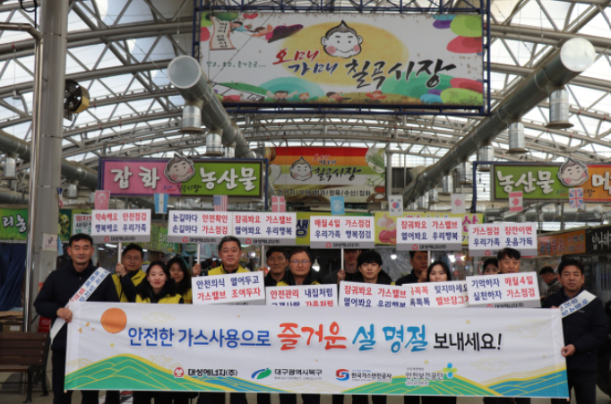 대성에너지는 설 명절을 맞아 북구 읍내동 칠곡 정기시장 가스사용시설을 대상으로 설맞이 가스안전 점검 및 도시가스 안전 캠페인을 실시했다고 7일 밝혔다.